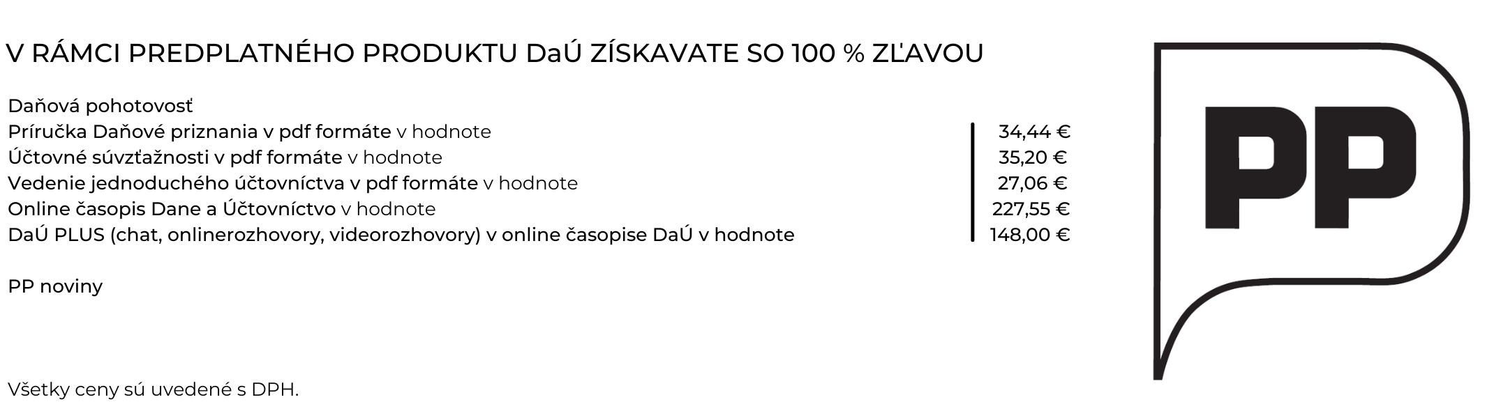 | DaÚ <strong>(tlačená publikácia)</strong> + online ročný prístup bezplatne | Ročník: 2026 | 172,03 € | 180,63 € | |